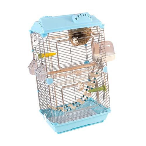 perfk Spielen Sie Vogelkäfig Vogelkäse Transparente Acryl -Doppelschicht mit Standzubehör für Lovebirds Conures kleine Haustiervögel, Blau
