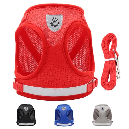 Hundegeschirr und Leine Set, Weich Mesh Gepolstert Geschirr, Air-Mesh Atmungsaktive Brustgeschirr, Verstellbare No Pull Reflektierend Brustgeschirr für Welpen Mittlere Klein Hunde