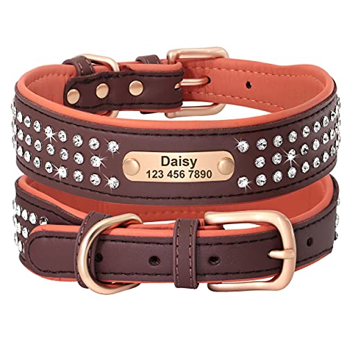 Beirui Personalisiertes Hundehalsband mit Strasssteinen für mittelgroße und große Hunde – glitzerndes Hundehalsband mit glitzernden Kristallen – strapazierfähiges PU-Leder mit Metallschnalle