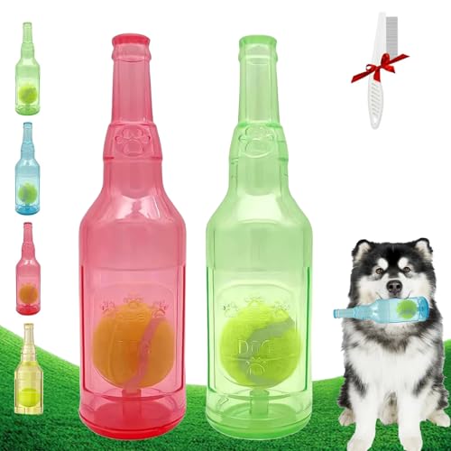 Yagerod Pet Chew Beer Bottle with Tennis Ball, Crunch and Play Bottle Dog Toy, Beer Bottle with Tennis Ball, Dog Toy Bottle Ball Inside, Interactive Fetch for Play and Training (A-2)