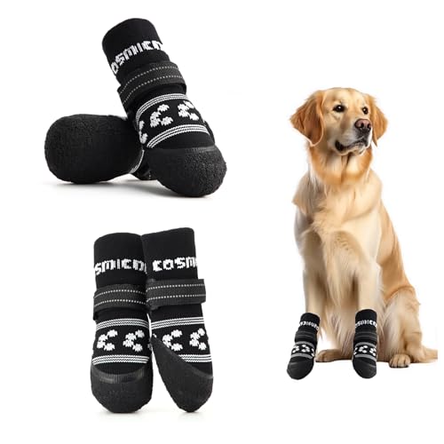 AQH Hundesocken - 2 Paar Hundepfotenschutz mit reflektierendem Verstellriemen, weicher Baumwolle & Rutschfester Latex-Sohle, für Innen- & Außenbereich (L (innen breit: 2.17"-5.5cm))