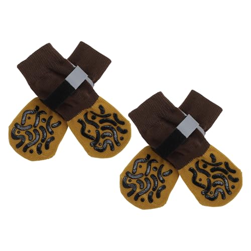CAPASTEC 4 Stück rutschfeste Hundesocken mit reflektierenden verstellbaren Bändern, Haustier-Socken für Hunde, Pfoten-Schutz für Holzböden, Braun, Medium