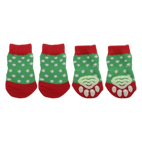 CAPASTEC Hundesocken rutschfeste Socken Für Hunde Katzen Haustier Socken Für Drinnen Pfotenschutz Und Haftung Dank Silikon Gel Für Hunde Katzen 1 Set (4 Stück) Rot Grün Groß