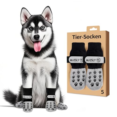 Maisly 5Stück Doppelseitige Anti-Rutsch Hundesocken mit Verstellbaren Riemen für Innen- und Außenbereich - Pfotenschutz und Traktionskontrolle auf Hartholzboden (Schwarz, XL)