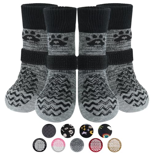 PUPTECK Hundesocken Anti-Rutsch 2 Paar Doppelseitige mit Verstellbaren Riemen für Innenbereich, Weiche Hunden Hundeschuhe Pfotenschutz Outdoor
