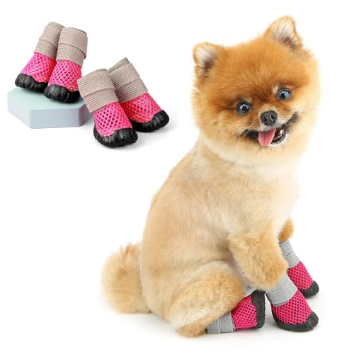 SMALLLEE_LUCKY_STORE Hundestiefel für heißen Bürgersteig, atmungsaktives Netzgewebe, Haustierpfotenschutz mit verstellbarem Streifen für kleine Hunde, waschbar, rutschfest, Welpenschuhe, bequemer