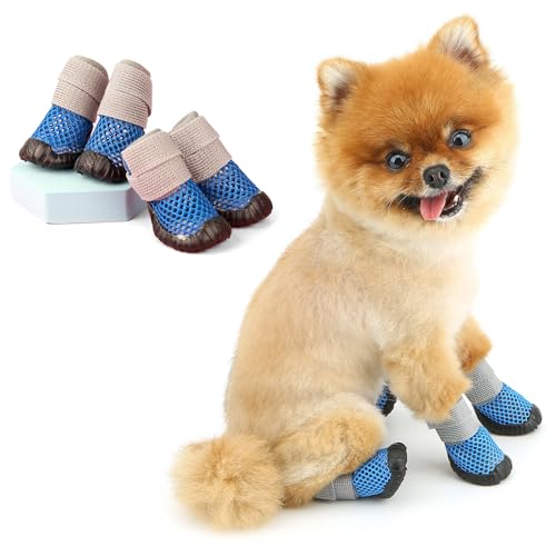 SMALLLEE_LUCKY_STORE Hundestiefel für heißen Bürgersteig, atmungsaktives Netzgewebe, Haustierpfotenschutz mit verstellbarem Streifen für kleine Hunde, waschbar, rutschfest, Welpenschuhe, bequemer