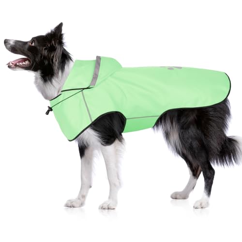 BiPawTi Verstellbar Regenmantel Hund Wasserdicht – Hunde-Regenjacke Reflektierenden Kapuze mit Verstellbarer Kordelzug, Ultraleicht Bequem Hunderegenmantel für Trockene, Sichere Gassigänge (M | Mint)