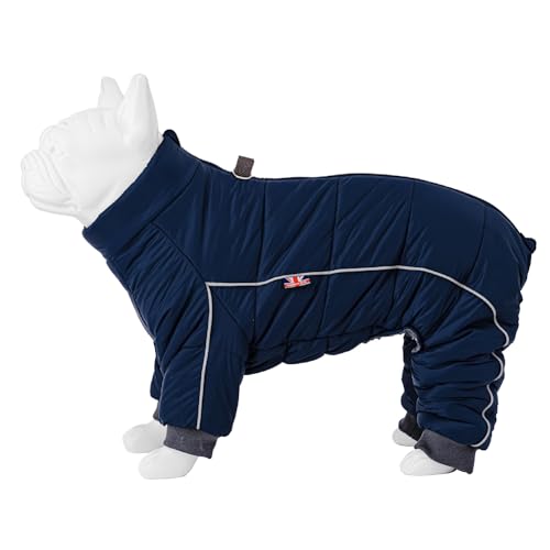 Wintermäntel - Der weiche, gepolsterte Winteranzug bietet Ihrem Hund in den kälteren Monaten sowohl Wärme als auch Komfort. Einfach zu tragen - die gerippten Bündchen sorgen für eine gute Passform um die Beine Ihres Hundes und unser Winteranzug dient mit einer Griffschnalle auf der Rückseite auch als Geschirr. Waschen - Ein Reißverschluss auf der Rückseite des Anzugs ermöglicht einfachen Zugang zum Anziehen Ihres Hundes und die PU-Beschichtung sorgt für eine abwischbare Außenseite. Reflektierend - Die lichtreflektierenden Paspeln um den Körper und die Beine machen unseren Overall ideal für Spaziergänge bei schlechten Sichtverhältnissen. Größen - Erhältlich in 7 verschiedenen Größen, um eine gute Passform für alle Hunderassen und -größen zu gewährleisten. Bitte sehen Sie sich vor dem Kauf unsere Größentabelle an.