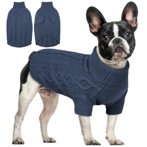 Hjumarayan Hundepullover - Schlicht & Elegant Pullover Hund, Warme Hundepullover Mittelgroße Hunde mit Geschirrloch für Leine, Schöner Hundepulli mit Beinen für Französische Bulldogge (Denim Blau M)