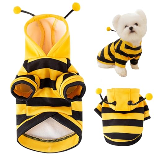 Hundebienenkostüm süß & Lustige Bienenhunde Kostüm mit D Ringgröße l Weiches Hoodie Winter -Outfit Halten Sie Haustiere warm für kleine Cosplay, Weihnachten, Halloween