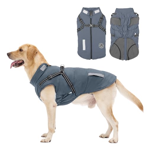 Hundemantel, Winter Hundejacke Wasserdicht Winddichte mit bauchschutz, Outdoor Hunde Wintermantel Hundeweste mit Fleece Gefütterte Reflektierend für Kleine Mittelere und Große Hunde