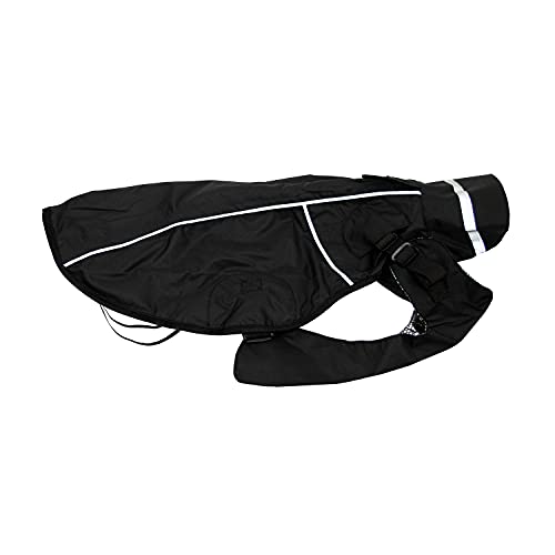 JEGGO Dry Dog, Regenmantel für Hunde, mit beidseitig zu öffnendem Reißverschluss, Wasser- und Winddicht, atmungsaktiv, mit Innenfutter zum Schutz vor Kälte (Schwarz, 60 cm)