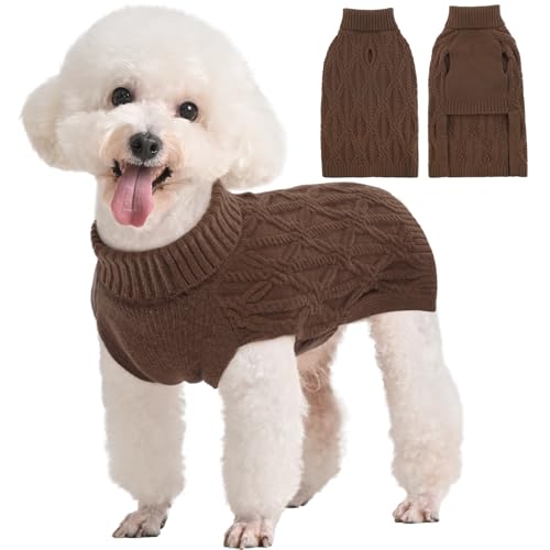 Kuoser Warm Hundepullover, Hundepullover Kleine Hunde, Rollkragenpullover Hundepullover Grosse Hunde, Hundepullover Fleece, Hundepullover Mittelgroße Hunde Braun M