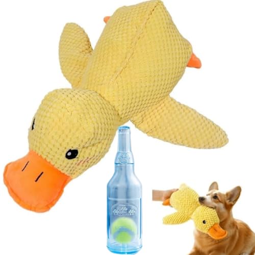Kreative Kombination: Dieses Hundespielzeug besteht aus einer transparenten Flasche kombiniert mit einem eingebauten Tennisball und Ente. Bringen Sie Ihrem Haustier endlosen Spaß und Genuss. MATERIAL - Die Ente dieses Hundespielzeugs besteht aus Plüsch und die Flasche ist aus TPR mit, dieses Haustier-Kau-Bierflaschenballspielzeug ist extrem langlebig und bietet lang anhaltenden Spaß. Quietschen: Dieses quietschende Hundespielzeug verfügt über einen eingebauten Quietsch-Luftbeutel, der Ihren Hund durch Geräusche anzieht und Ihr Haustier unterhält und Ihrem pelzigen Haustier endlosen Spaß und Freude bringt. Verbesserte Interaktion: Perfekt zum Binden. Dieses Hundespielzeug kann für Ihren Hund weggeworfen werden, um Spaß beim Jagen und Apportieren zu haben. Eine großartige Möglichkeit, Zeit mit Ihrem Hund zu verbringen, während er aktiv und beschäftigt bleibt. Geeignet für alle Hundegrößen: Dieses Hundespielzeug ist für alle Arten von Hunden geeignet, es ist eine großartige Möglichkeit für sie, die Beweglichkeit und Problemlösungsfähigkeiten Ihres Hundes zu verbessern, sowie die Zähne zu reinigen und das Zahnfleisch zu massieren.