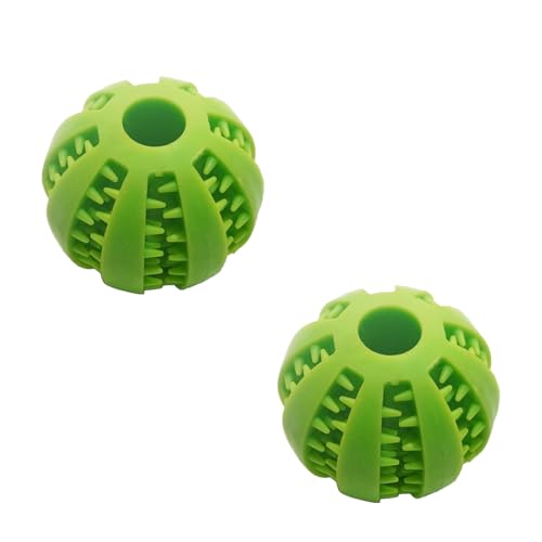 OLEOJH Leckerli-Ball, Hundespielzeug, Snack-Spenderball, Zahnreinigungsspielzeug, interaktives Hundespielzeug, geeignet für kleine Hunde, Grün, 5 cm, 2 Stück