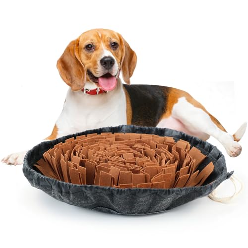 Schnüffelmatte für Hunde: Es ist eine einzigartige Hundetrainingsmatte, die es Ihrem Hund ermöglicht, Leckerlis zu finden, die in der Schnüffelmatte versteckt sind. Die Forschung zeigt 10 Minuten Schnuffelaktivität ≈ 1 Stunde Laufzeit. Diese Schnüffeldecke kann Ihrem Hund die überschäumende Energie effektiv entziehen, sodass Ihr Vierbeiner der Langeweile ade sagen und den Spaß am Riechen genießen kann Hautfreundliches Material und Leicht zu Reinigen: Die Snüffelmatte besteht aus robustem Filzgewebe ist weich und sanft für Gesicht und Körper des Hundes. Lange andauernd, Verschleißfest und beißend. Keine harten oder störenden Kauspielzeuge mehr,und die Trainieren Matte kann helfen, Zähne zu reinigen und Zahnkrankheiten zu reduzieren. Die Hunde-Snüffelmatte ist einfach zu reinigen und waschen, er kann in der Maschine gewaschen und im Trockner getrocknet werden Kompaktes und Praktisches: Diese Schnüffelmatte für Hunde hat eine rutschfeste Unterseite, die ein Verrutschen verhindert. Das Design ist kompakt und kann in eine Hundefutteraufbewahrung geschrumpft werden, so dass Sie überall mit ihm reisen können und sicherstellen, dass Ihr Welpe glücklich, entspannt und ruhig ist Schnüffeltrainingsmatte: Streuen Sie das Futter auf die Schnüffelmatte und lassen Sie die Hunde das Futter durch Schnüffeln finden, was ihre Schmiedefähigkeiten verbessert. Es kann nicht nur langsam füttern und eine gute Verdauungsfähigkeit haben, sondern kann auch die Geist. Die Geruchstrainingsmatte für Hunde ermöglicht es Ihnen dank ihres originellen Designs, das Futter im Inneren zu finden und so die Sinne Ihres Hundes zu schulen Geeignet für Alle Hunde: Die Hundetrainingsmatte hat eine Ungefaltetes Größe von 48x48cm, Einstellbare Größe, ideal für große, mittelgroße, kleine Hunde, katzen und kaninchen und andere Tiere. Diese Hunde-Snüffelmatte ist für alle Hundearten geeignet und dient auch als Futtermatte für Katzen. Jeder Tierliebhaber verdient es, diese praktische Matte zu besitzen. Es ist ein perfektes lustiges Geschenk für Familien, Freunde und Haustierbesitzer