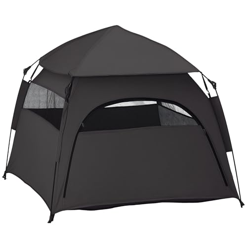 PawHut Haustierzelt, Hundezelt, Katzenhaus im Freien, Hundehaus mit Meshfenster, Hunde Tipi Zelt mit Tragetasche, Sonnendach für Hinterhof, Wohnzimmer, Dunkelgrau