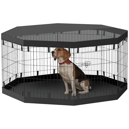 PawHut Welpenauslauf, Welpenlaufstall mit Türen, Fenster, Laufgitter mit Atmungsaktiv Netz, für kleine & mittelgroße Hunde unter 20 kg, Indoor & Outdoor, 159 x 159 x 76 cm, Schwarz