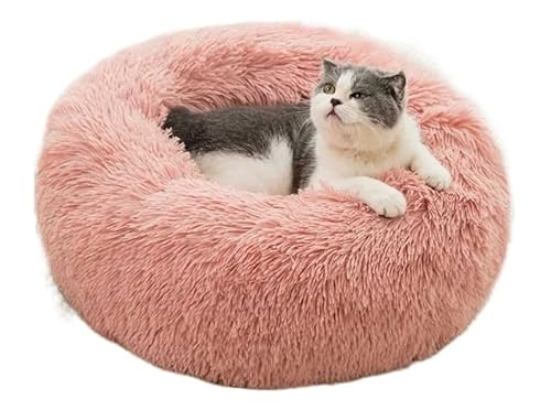Beruhigende Hundebett Katzenbettwäsche Hunde Bett Katzenbett Haustierbett für Katzen und Hunde runden Kunstfell Haustier Nest mit Lint Matratze Matte für Haustier (Farbe: Roze, Größe: Durchmesser 40