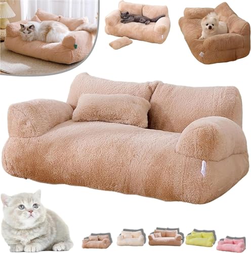 Pelinuar Beruhigendes Haustiersofa, beruhigendes Hundebett, flauschiges Plüschsofa, weiches Katzenbett, orthopädisches Bett aus Memory-Schaum, mit abnehmbarem, waschbarem Bezug (L, Kaffee)
