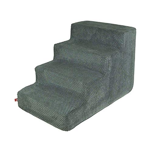 Hundetreppe 40 cm hoch | Katzentreppe Haustiertreppe | 4 Stufen | Hunde Katzen Haustier | für Bett und Auto | Trepp für kleine Hund | Plüschbezug | Farbe: Dunkel Grau