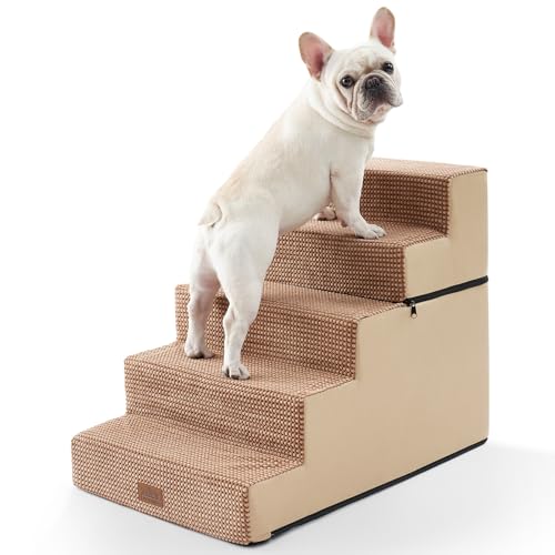 COZY KISS Hundetreppe, Haustiertreppe mit auslaufsicherer Abdeckung für Kleine Hunde Katzen, Hochdichter Schaumstoff-Hunderampe für Bett Sofa Auto (Hellbraun, 75x50x60cm-Abnehmbar, 5)