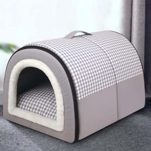 Hohe Qualität – Hergestellt aus Oxford-Oberflächengewebe, Leinen-Baumwolle und ultraweichem Schaumstoff, der eine sichere und gemütliche Umgebung für Ihre Haustiere bietet, wasserdichte und kratzfeste Oberfläche, um Kratzer von Ihrem Welpen oder Kätzchen zu verhindern. 2-in-1-Haustierbett – Das umwandelbare 2-in-1-Haustierhaus dient sowohl als Hundebett als auch als Hundehütte. Drücken Sie es einfach nach unten, um das Dach zu wechseln und Ihr Haustier wird denken, dass das Haustiersofa perfekt ist. Ultraweich und gemütlich, warm und bequem. Hundehöhle gegen Angstzustände: Das geschlossene Design dieser Haustierhäuser bietet ein zusätzliches Gefühl von Sicherheit und Komfort für Ihre vierbeinigen pelzigen Freunde. Hundebett mit einem abnehmbaren, gepolsterten Kissen ist perfekt für jedes Haustier, das sich gerne graben und kuschelt. Super weich und Anti-Angst. Weich und warm – warmes Winter-Zelt für Hunde, Welpen, Katzen, Kätzchen, Kaninchen. Der zeitlose Stil unseres Plüsch-Haustierhauses ermöglicht es, dass sie sich nahtlos in jede Einrichtung einfügen, es passt zu Ihrer Heimdekoration und passt perfekt in Ihren Wohnraum. Praktisches Design – rutschfeste Unterseite sorgt für Sicherheit. Unser Haustierbetthaus ist perfekt für den Innen- und Außenbereich. Mit einem Griffband oben und einer rutschfesten Unterseite, um ein Verrutschen zu verhindern, ist der obere Griff leicht zu tragen. Gute Idee für Haustiere und Reisen.