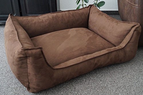 Hundebettenmanufaktur Hundebett Wildlederoptik Hundesofa Schlafplatz Velluto waschbar Farbe und Größe wählbar (130 cm X 100 cm, Alcantara braun)