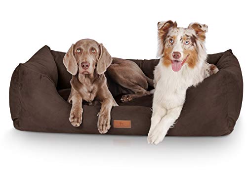 Knuffelwuff Hundebett Dreamline aus Velours XL 105 x 75cm Braun - abnehmbarer Bezug - leicht zu reinigen - für große, mittelgroße und kleine Hunde