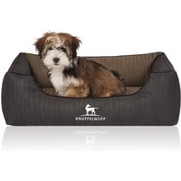 Ein orthopädisches Hundebett passt sich optimal dem Körper des Hundes an, was unter anderem seine Rückengesundheit unterstützt. Das orthopädische Hundebett Outback verfügt über eine Memory Foam Liegefläche. Diese Matratze passt sich durch Druck und Körperwärme ideal an die Anatomie deines Hundes an und beugt so Durchblutungsstörungen vor. Tag für Tag passt sich die Matratze den Konturen und dem Gewicht deines Hundes an. Es nimmt so die Spannung von der Wirbelsäule. Die enorm lange Lebensdauer dieser Liegefläche ist nur einer von vielen Vorteilen, die das orthopädische Hundebett Outback mit sich bringt. Das sehr hochwertige, per Laser gesteppte Kunstleder lässt sich leicht reinigen, indem man es feucht abwischt oder -saugt. Bei stärkeren Verschmutzungen sind die Bezüge dank eines eingenähten Reißverschlusses einfach abzunehmen, was die Reinigung um ein Vielfaches erleichtert. Die 25 cm hohen Seitenwände im orthopädischen Hundebett Outback schützen nicht nur vor Zugluft, sie laden auch zum hineinkuscheln ein. Die Füllung aus Schaumstoffflocken verhindert störende Geräusche aus dem Hundebett. Um auch Bodenkälte keine Chance zu geben verfügt das orthopädische Hundebett Outback über einen rutschfesten Dämmstoff. Gönne deinem Hund mit dem orthopädischen Hundebett Outback etwas Gutes für seine Gelenke und erfreue dich an dem stylischen Design dieses Premium Liegeplatzes aus dem Hause Knuffelwuff. Außen-/Innenmaße: M-L 85 x 63cm / 50 x 33cm XL 105 x 75cm / 70 x 50cm XXL 120 x 85cm / 85 x 55cm