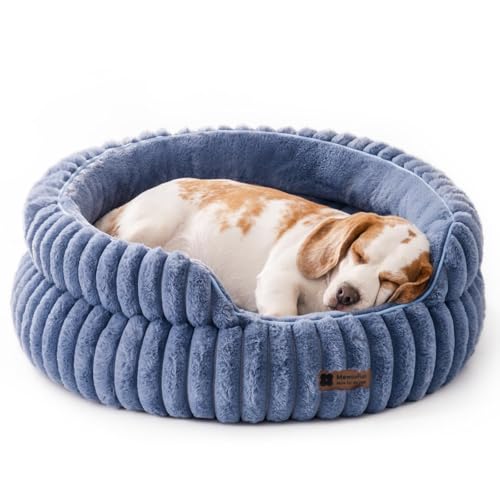 MEWOOFUN Stilvolle Katzenbetten für Katzen, weiches rundes Hundebett für kleine und mittelgroße Hunde, waschbares, beruhigendes Haustierbett (Blau, L)
