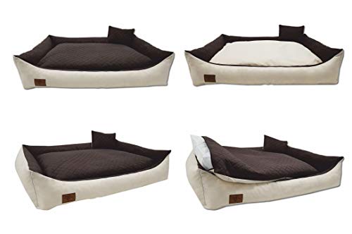 Odolplusz Hundebett waschbares Hundebett mit Rand, Hundekissen 120x90 cm (Braun - Begie)