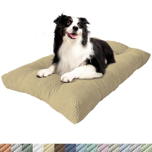 PHUSTJKL Hundebett Mittelgroße Kleine Hunde, 110x65x15cm Waschbar Hundekissen mit Rutschfester Unterseite, Flauschiges Atmungsaktiv Superweich Katzenbett Haustierbett Hundematratze-Hellbraun