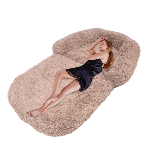 [Ergonomisches Design]: Das Bett folgt ergonomischen Prinzipien und bietet dank der dicken, gewellten Schaumstoffbasis, die Sie vom isoliert, eine hervorragende Unterstützung für Kopf und Nacken. [Intime Bindung]: Das geräumige Design ermöglicht intime Momente mit Ihrem pelzigen Freund, egal ob drinnen oder draußen, und schafft wundervolle Erinnerungen in einer gemütlichen Umgebung unter der Sonne. [Vielseitig einsetzbar]: Dieses Bett eignet sich perfekt für verschiedene Umgebungen und dient als Schlafplatz oder Matratze im Wohnzimmer, Schlafzimmer, Arbeitszimmer, Kinderzimmer oder Büro. Ausgestattet mit robusten Riemen für einfache Mobilität und Neupositionierung. [Sicherheitsmerkmale]: Die rutschfeste Unterseite aus PVC-Gewebe greift sicher auf jedem Bodentyp und sorgt für Sicherheit bei der Verwendung. Der abnehmbare und maschinenwaschbare Plüschbezug sorgt für zusätzlichen Komfort und erleichtert die Sauberkeit des Bettes. [Extra geräumiger Komfort]: Inspiriert von traditionellen Haustierbetten bietet dieses Design einen komfortablen, besonders geräumigen Raum, in dem Sie und Ihr Haustier bequem kuscheln können, ohne sich eingeengt zu fühlen.