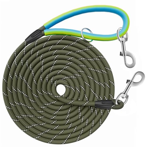 Aystkniet Reflektierende Trainingsleinen für Hunde, 5 m/10 m/15 m/20 m/30 m lange Leine mit Doppelclip und weichem Gummigriff, starke Schlepp-Trainingsleine für kleine, mittelgroße und große Hunde von Aystkniet