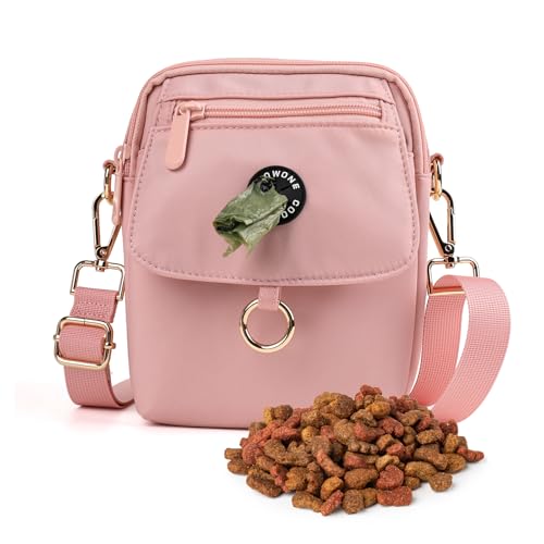 COOWONE wasserdichte Hundeleckerli-Tasche, Hundespaziergang Tasche, Leckerli-Tasche für Hunde, Hundetasche mit Poop Bag Dispenser, Crossbody Bag für Hundetraining (Rosa)