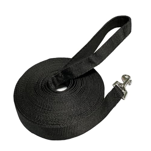 NavoX Trainingsleine für Hunde, 10 m, Nylon, lange Leine, Hundeleine mit gepolstertem Griff, für Hunde, die Gehorsamkeitsverfolgung (schwarz)