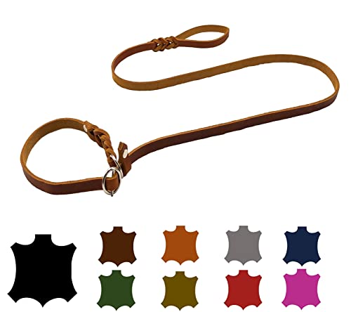 Hundeleine Fettleder Agility/Retrieverleine mit Zugstopp/Moxonleine für kleine Hunde/große Hunde (1,70m X 8mm, Cognac)