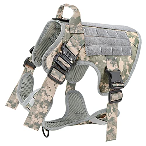 Hundeleine zum Trainieren Taktisches Hundegeschirr und Leine Set Metallschnalle Große Hundeweste Haustiergeschirr Hundeleine(ACU Harness,M)