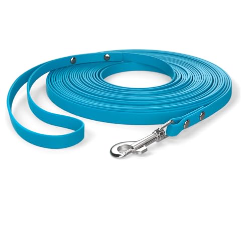 10m Schleppleine, Hundeleine, Handschlaufe, Cyan-Blau, extra schmal, schmutz- und wasserabweisend