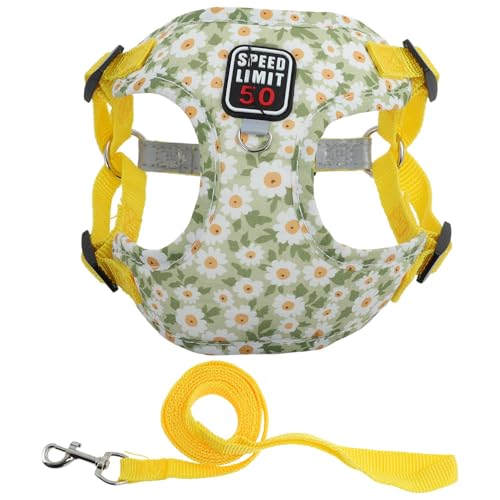 CAPASTEC Hundegeschirr und Leine Set Mit Reflektierendem Streifen Verstellbares Geschirr Für Spaziergänge Geschirr Für Kleine Und Mittlere Hunde Und Katzen XL Gelb