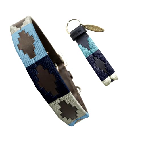 Carlos Diaz Echtes Leder gewachstes Premium-Polo-Hundehalsband mit Stickerei M von CARLOS DIAZ
