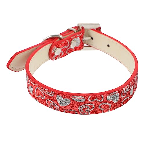 DINHEAROM Leuchtendes Hundehalsband Aus Pu Mit Glitzerndem Herz, Verstellbar Für Haustierbedarf Passt Für Welpen Und Hunde Rot
