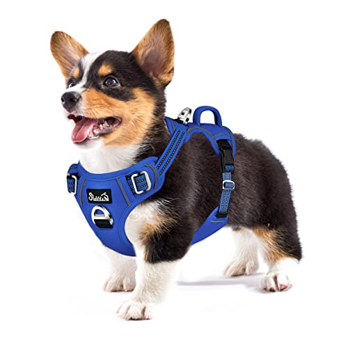 Eyein Hundegeschirr für Mittelgroßer Hunde, Anti Zug Brustgeschirr mit 2 Leinenclips und leicht zu bedienendem Griff, Verstellbare und reflektierende Gepolstert Geschirr für Spaziergänge (Hellblau, M)