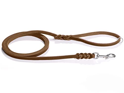 Fettlederleine 1m Hellbraun Cognac mit Handschlaufe, Ring + Chrom Haken Lederleine (1m x 15mm)