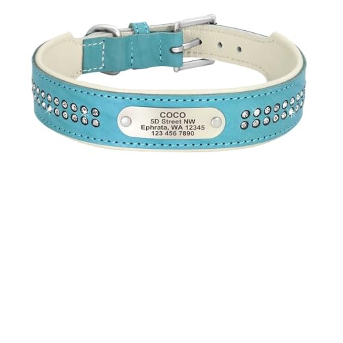 Personalisiertes Hundehalsband Bling Strass Leder Haustierhalsbänder for kleine mittelgroße und große Hunde Graviertes Haustier-ID-Namensschild(107 Green,4)