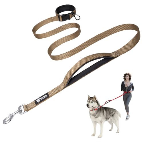 TSPRO Freihandleine Hund für Mittel bis Große Hunde, Verstellbar und Dauerhaft, mit Weichem Gepolstertem Griff und Metallschnalle (Khaki 25)