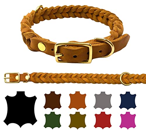 Hundehalsband Fettleder große Hunde verstellbar Messing handgeflochten Made IN Germany Lederhalsband (S 32cm-38cm Breite:25mm, Cognac)