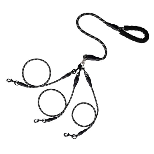 Jackanna Haustierbedarf reflektierende Nylon Hundeleine EIN Schlepptau Zwei DREI Hundeleine Anti-Tangling Multi abnehmbare Hundeleine (Schwarz Eins Abschleppen DREI)